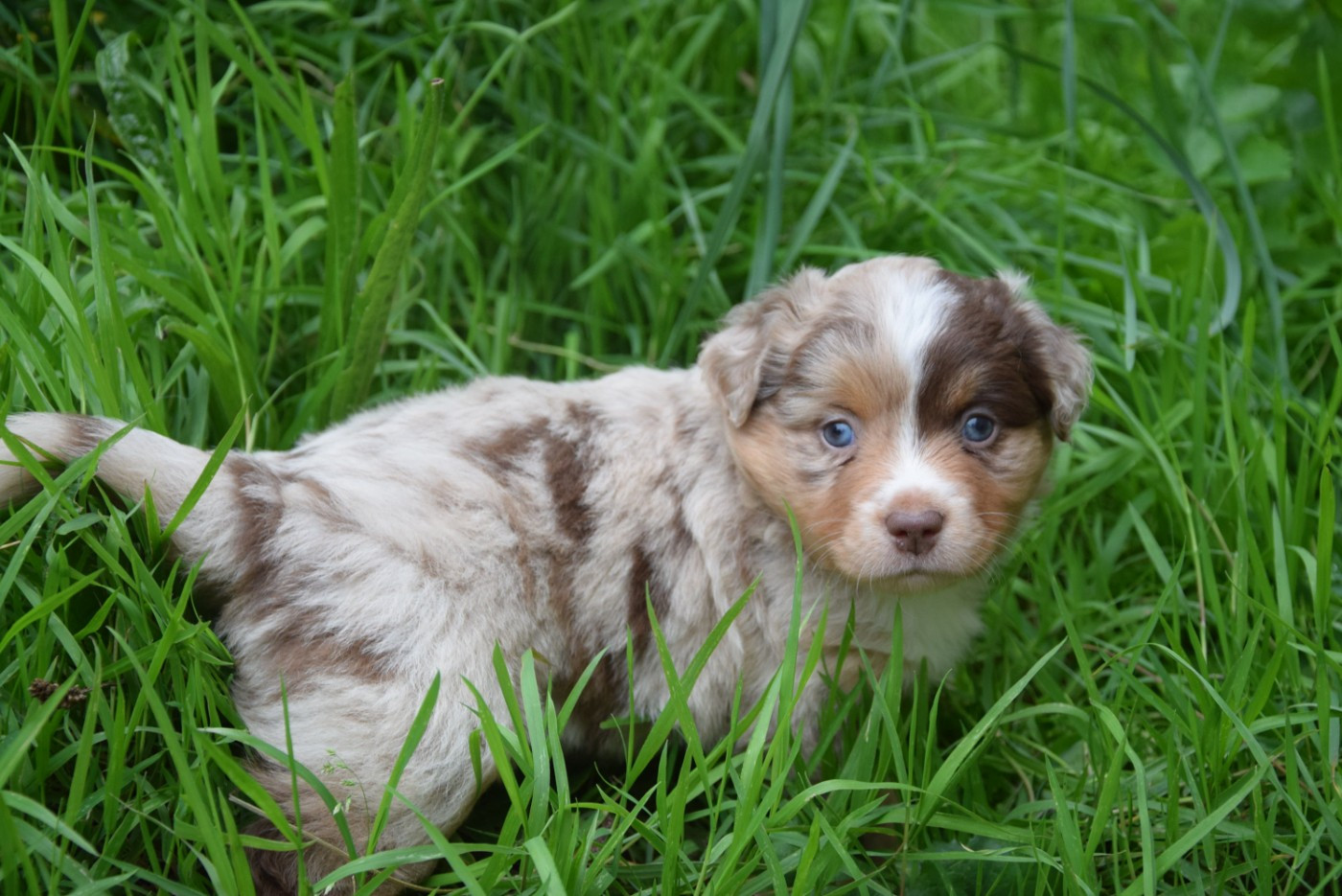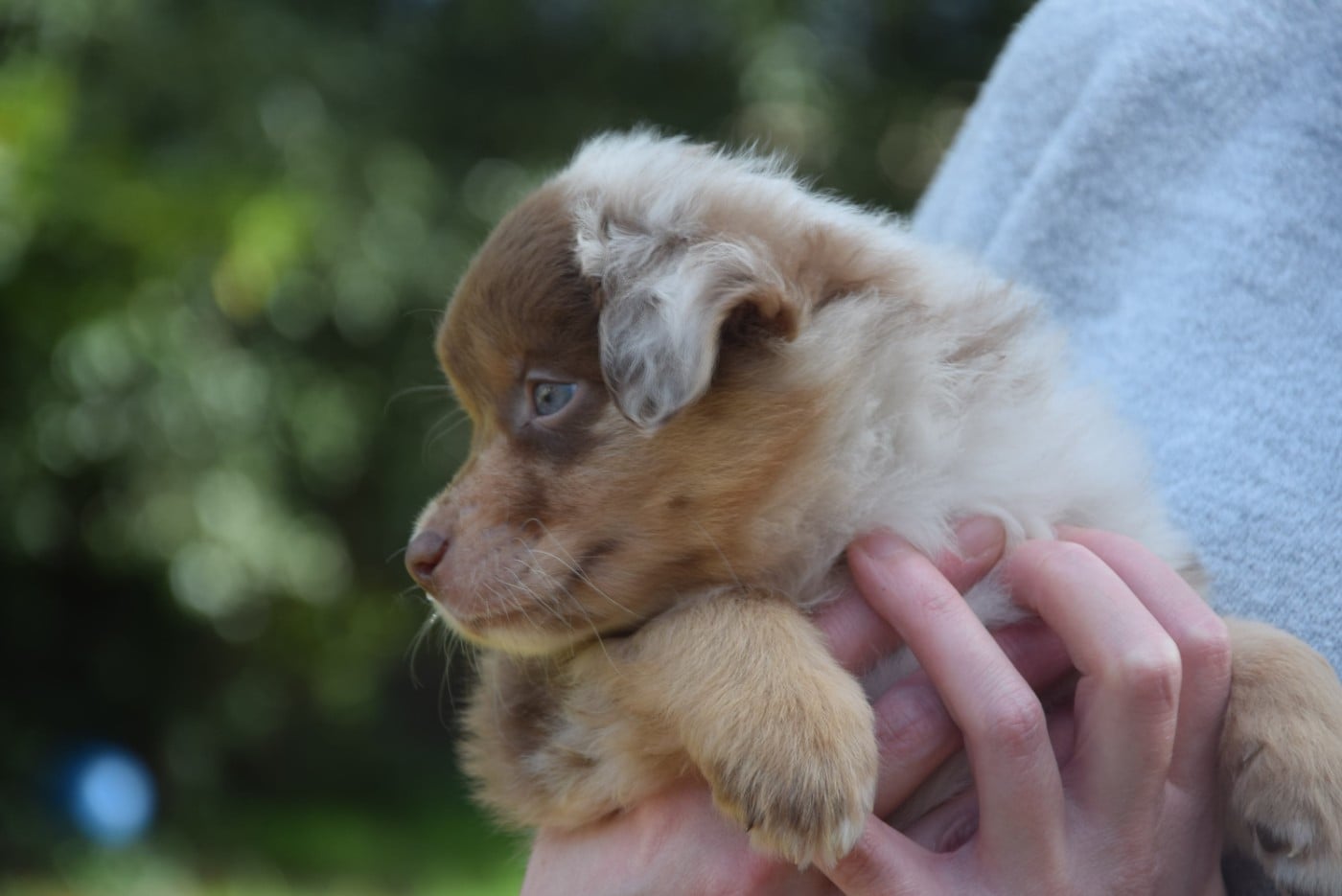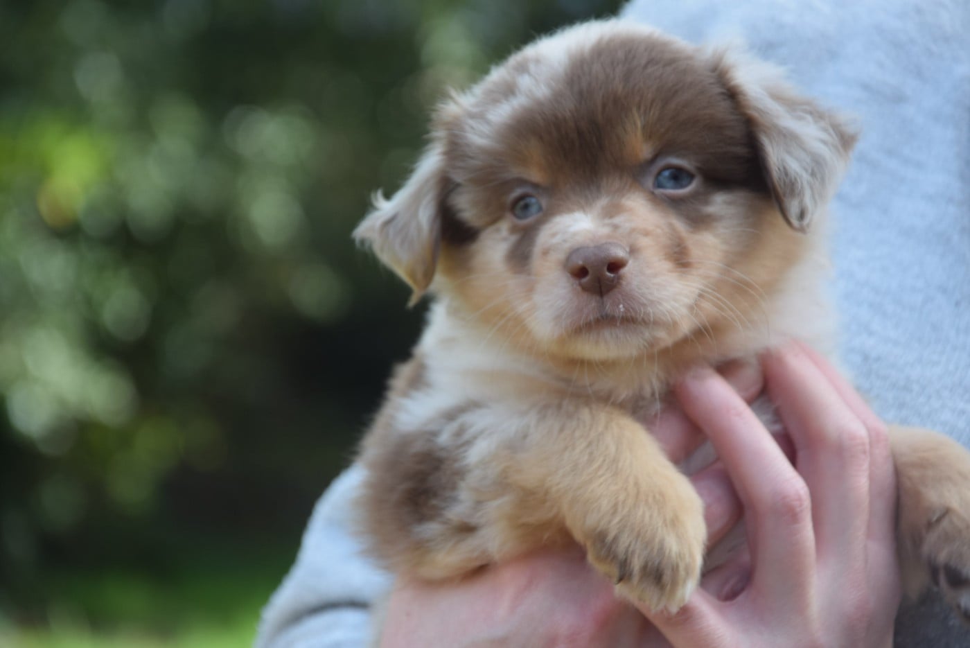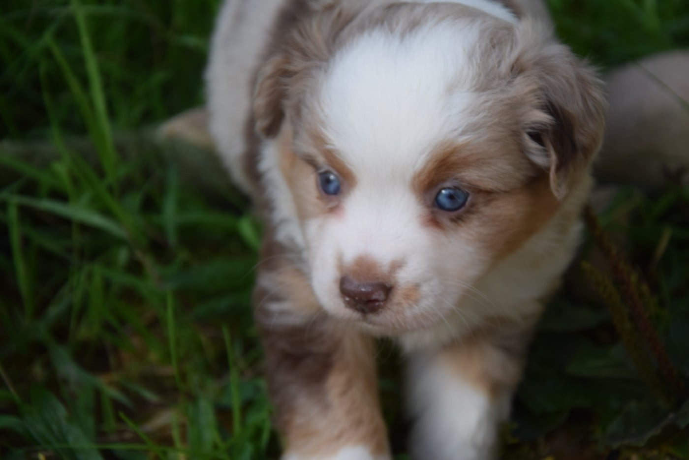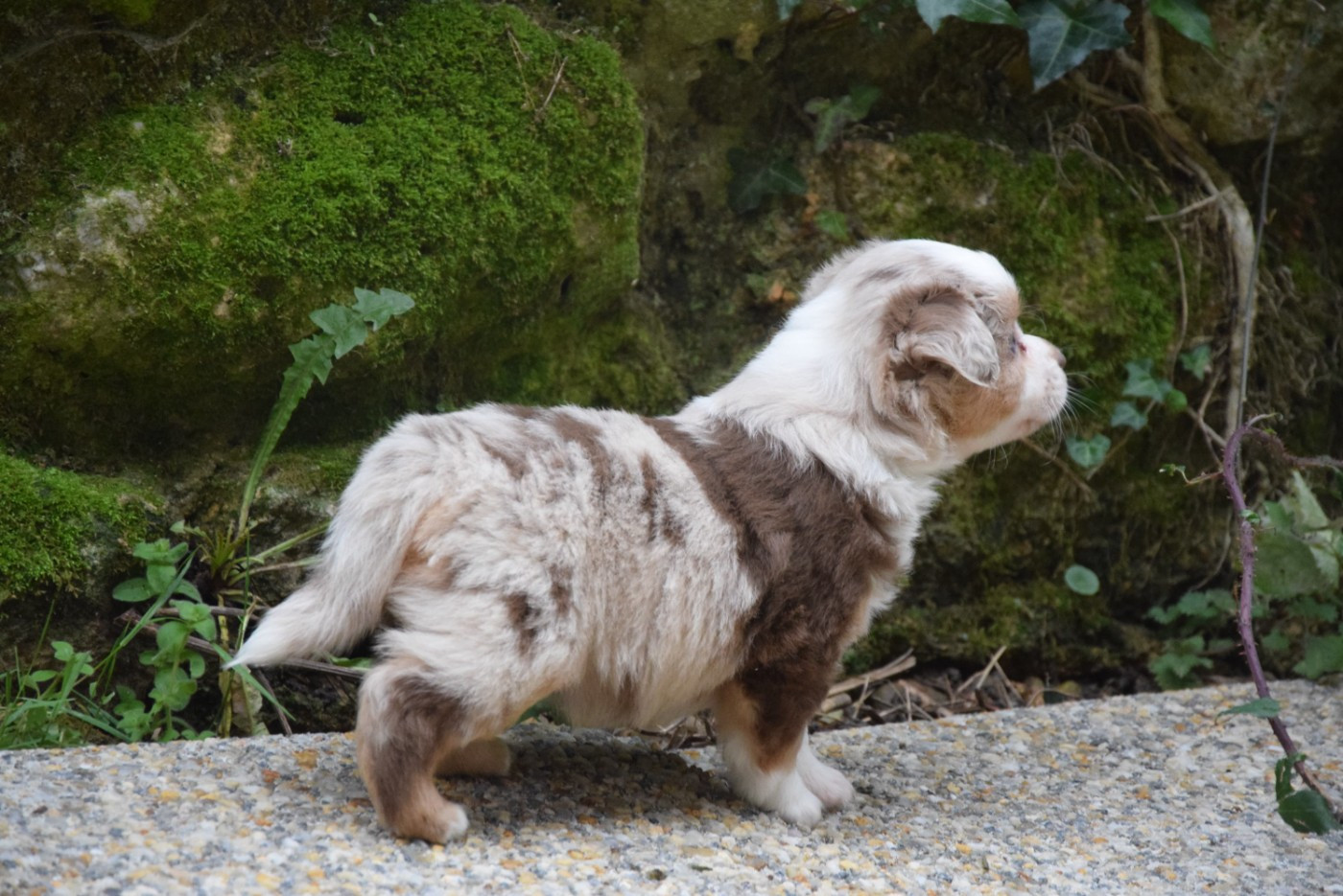 Un dessin sur la tête original, ce petit rouge merle vous donnera plein de petits bonheurs, très proche de l'homme, il vous accompagnera partout.