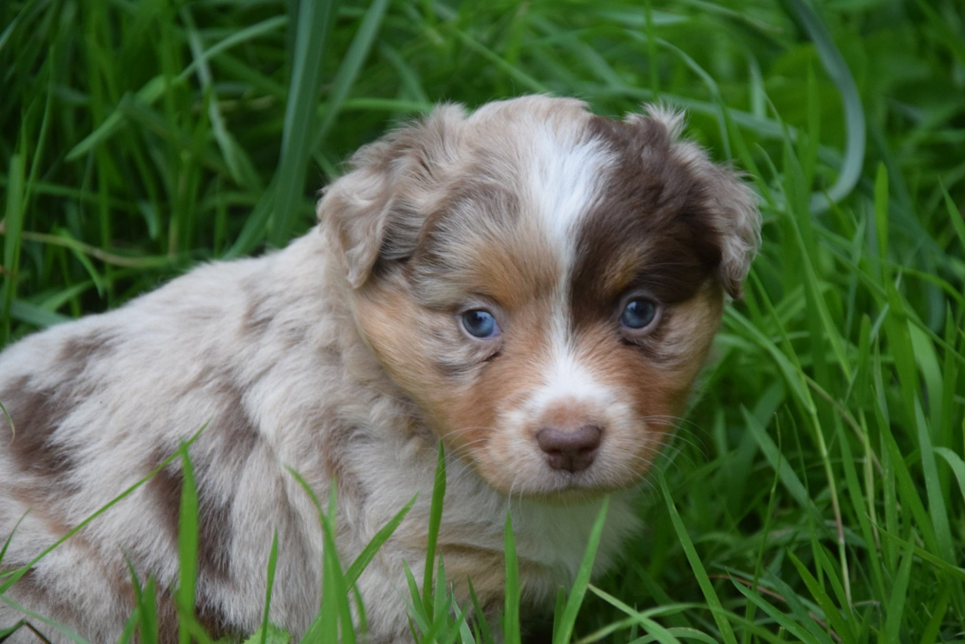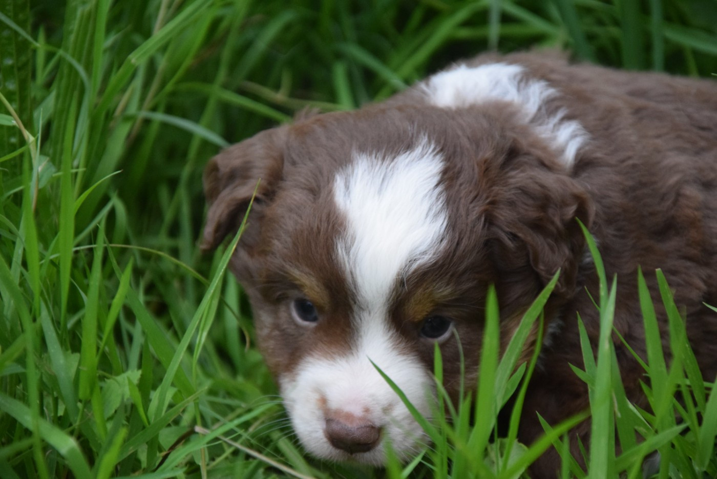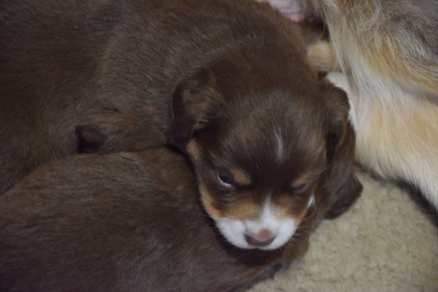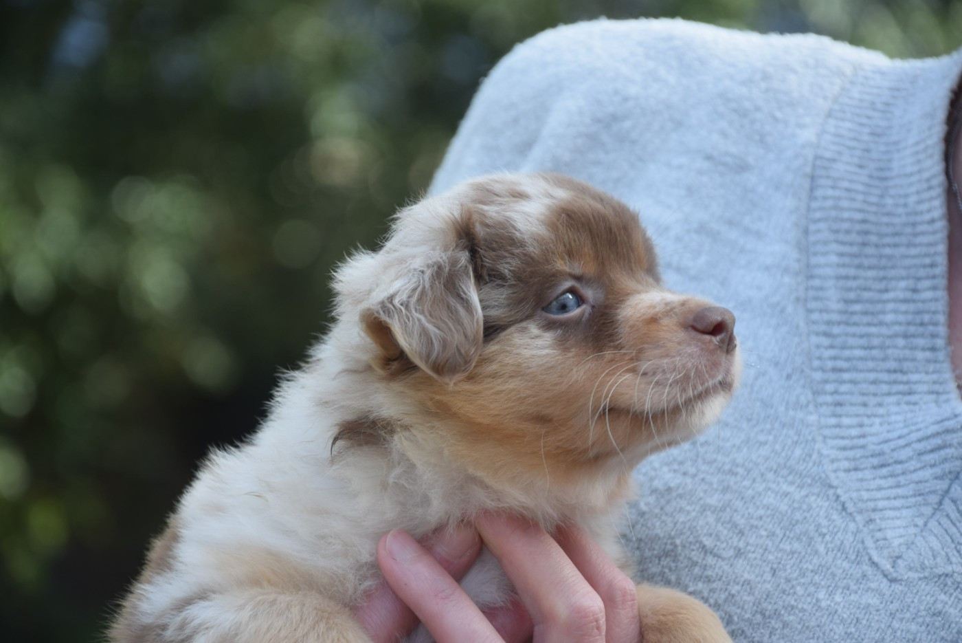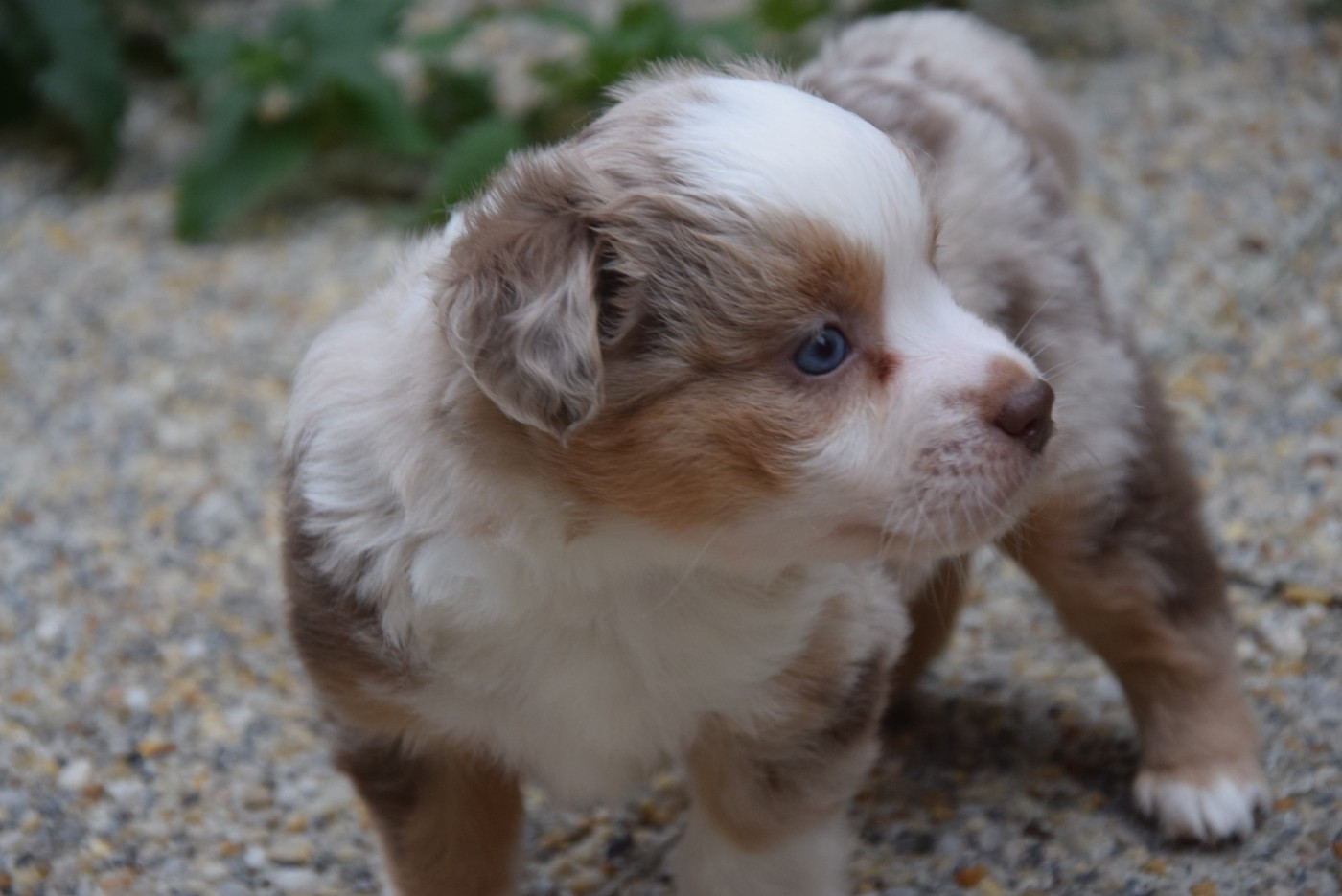 Un dessin sur la tête original, ce petit rouge merle vous donnera plein de petits bonheurs, très proche de l'homme, il vous accompagnera partout.