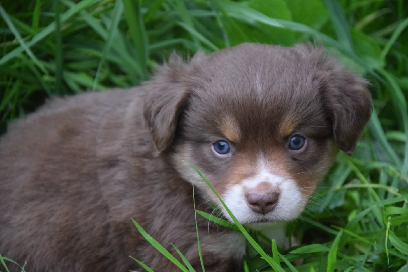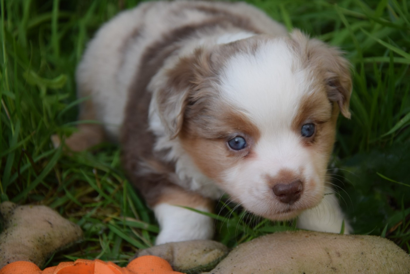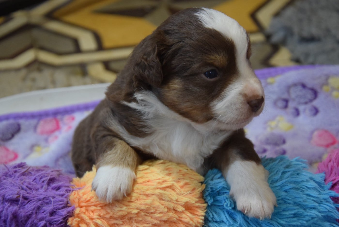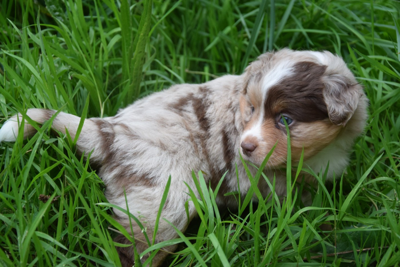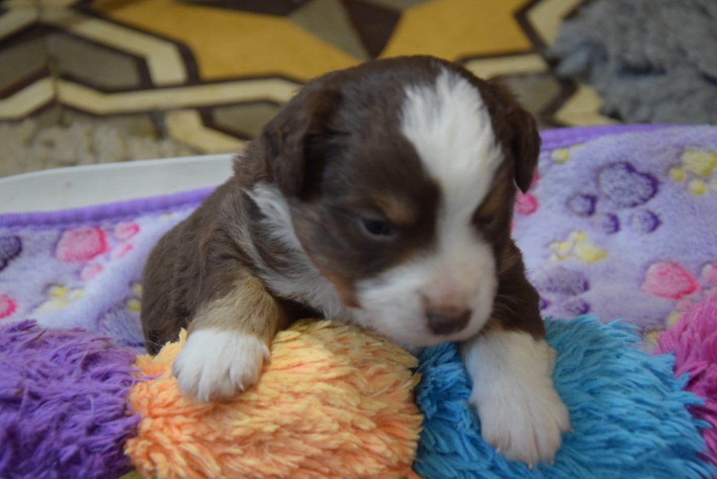 Un dessin sur la tête original, ce petit rouge merle vous donnera plein de petits bonheurs, très proche de l'homme, il vous accompagnera partout.