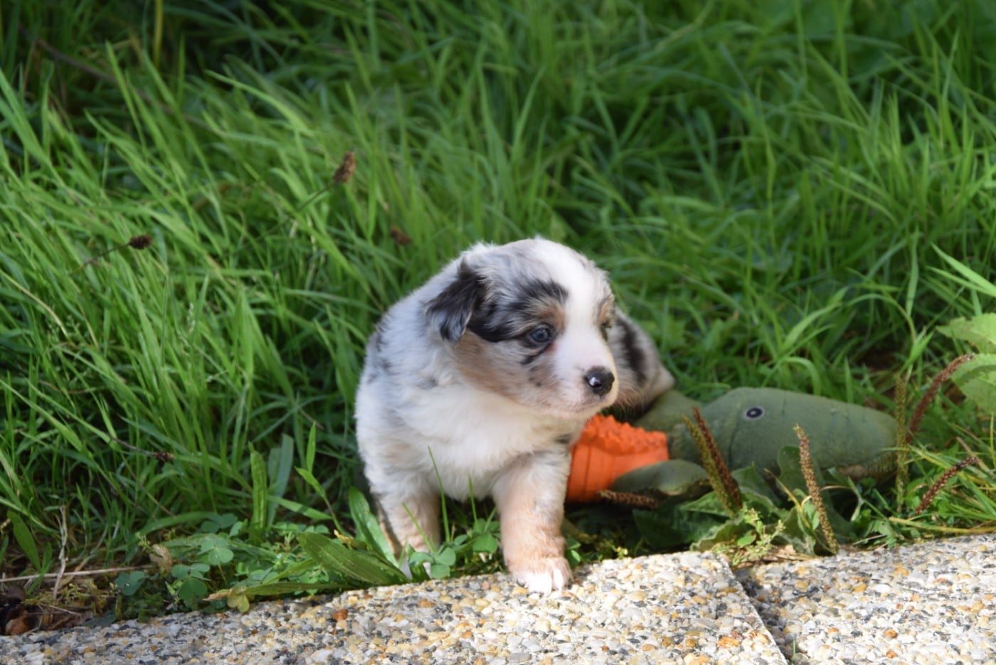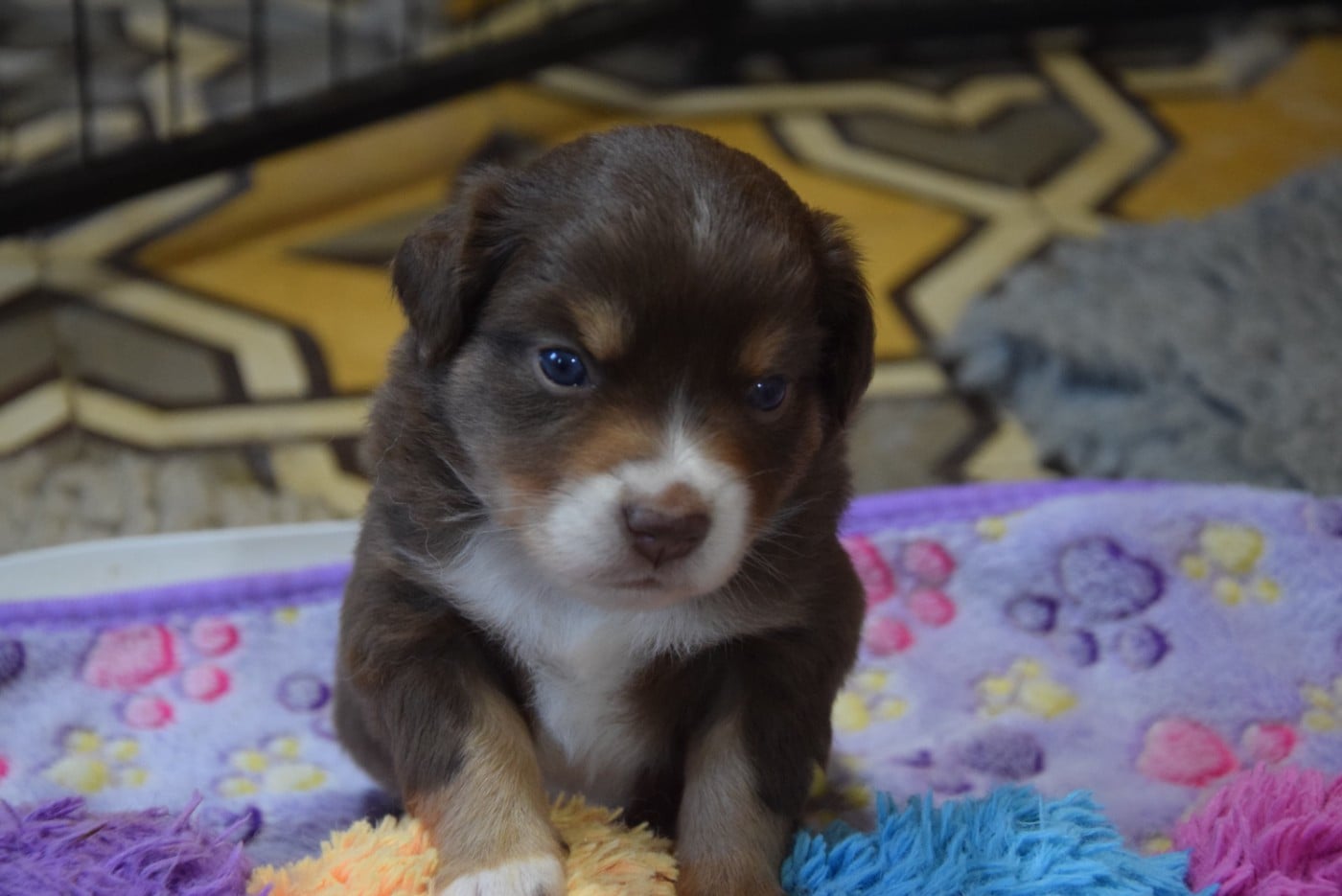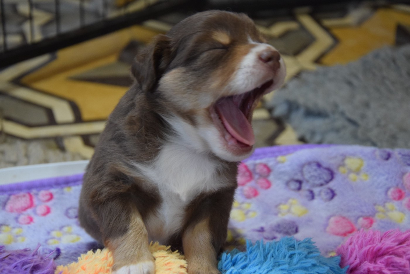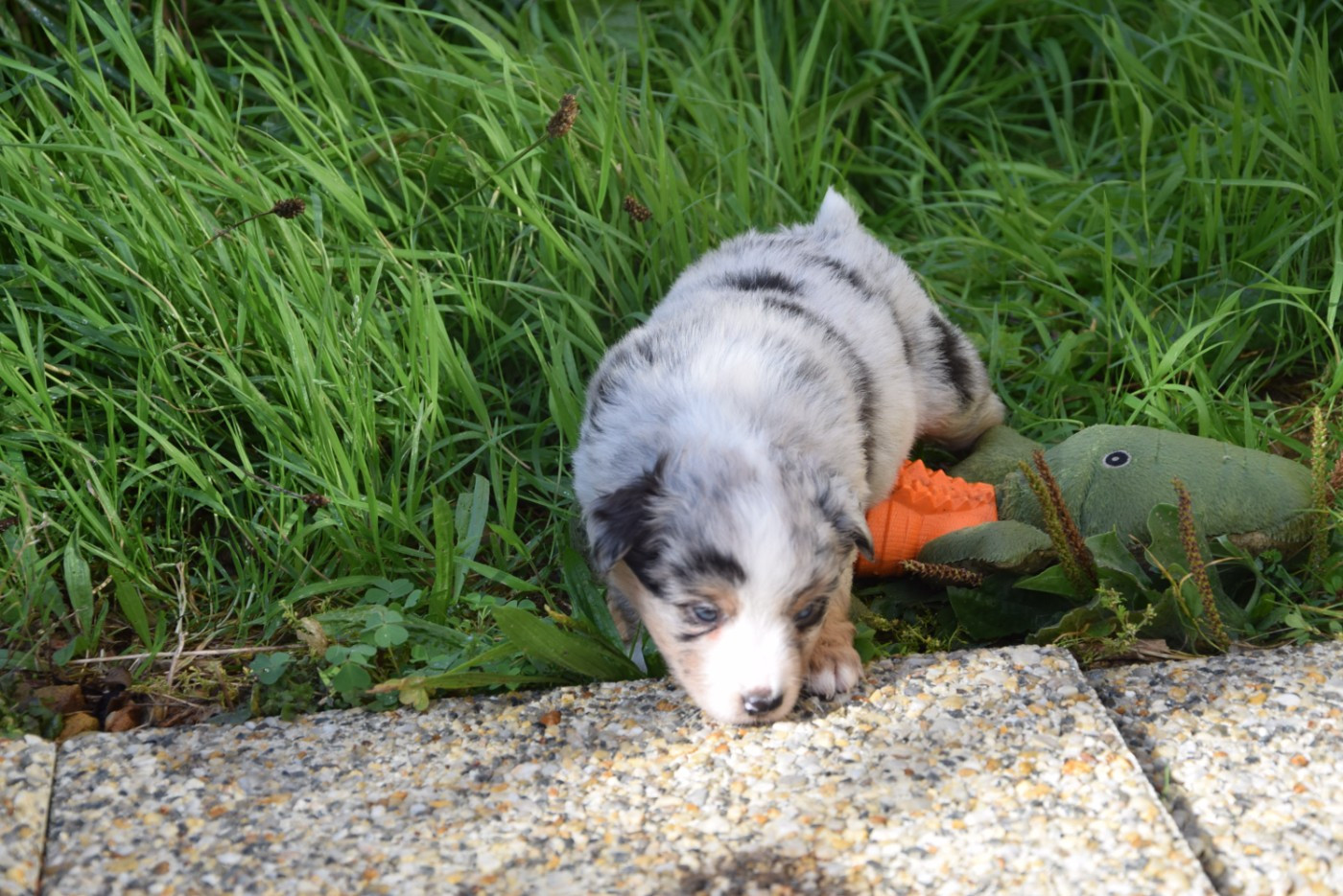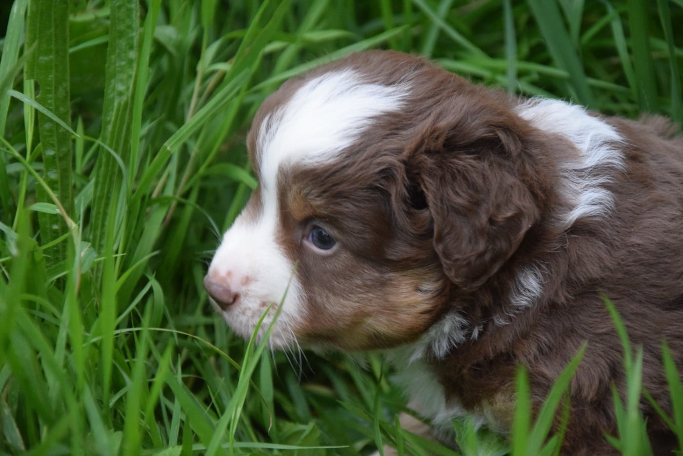 Un dessin sur la tête original, ce petit rouge merle vous donnera plein de petits bonheurs, très proche de l'homme, il vous accompagnera partout.
